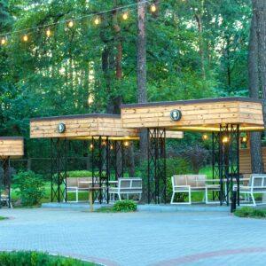 Він створений для того, щоб ви насолоджувалися справжньою гастрономічною подорожжю в оточенні спокою та природньої краси. У нашому ресторані вас приємно здивують затишні альтанки серед соснових дерев, де ви зможете насолодитися обідом або вечерею в компанії друзів та родини. Особлива увага – до дітей, які можуть гратися на спеціально обладнаному дитячому майданчику. Банкетні зали стануть в нагоді тим, хто святкує весілля, день народження або для проведення корпоративів. Наша команда професіоналів пропонує вам сервіс, який допоможе забути про буденні турботи.